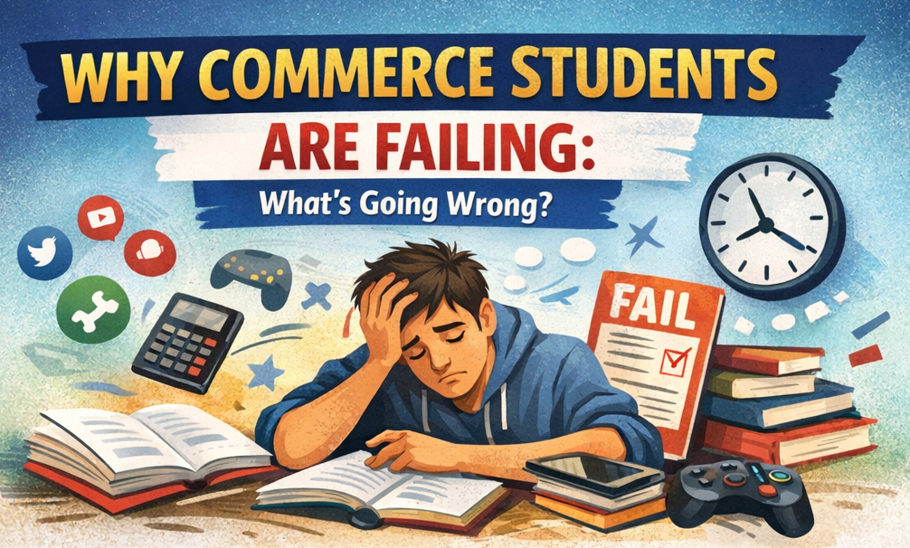 Why Commerce Students Are Failing: The Real Reasons No One Talks About Every year, we see a growing number of commerce students struggling in Class 11, Class 12, graduation, and professional courses. Parents feel confused, students feel stressed, and teachers feel helpless. The big question is: Why is this happening, even to capable students? This blog is not to blame anyone. It is to create awareness—for students to correct their direction early and for parents to guide them better.